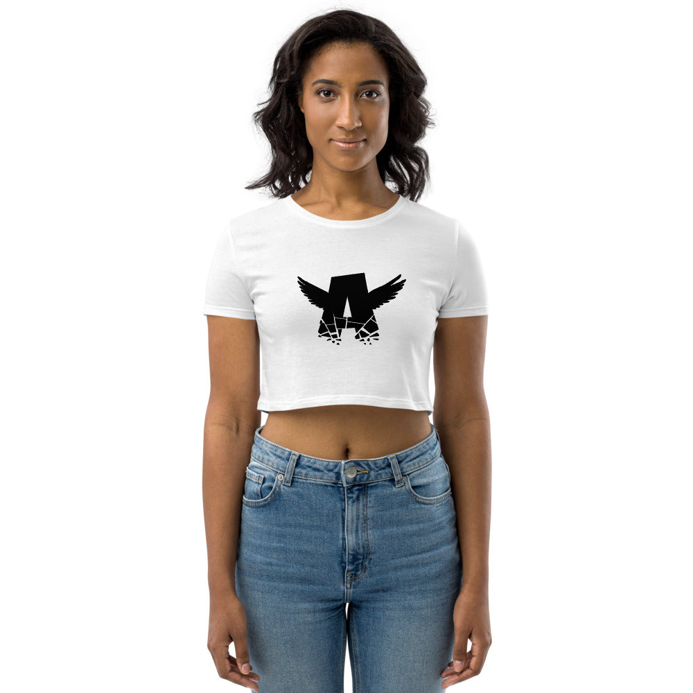 Women Organic Crop Top | BLACK LOGO